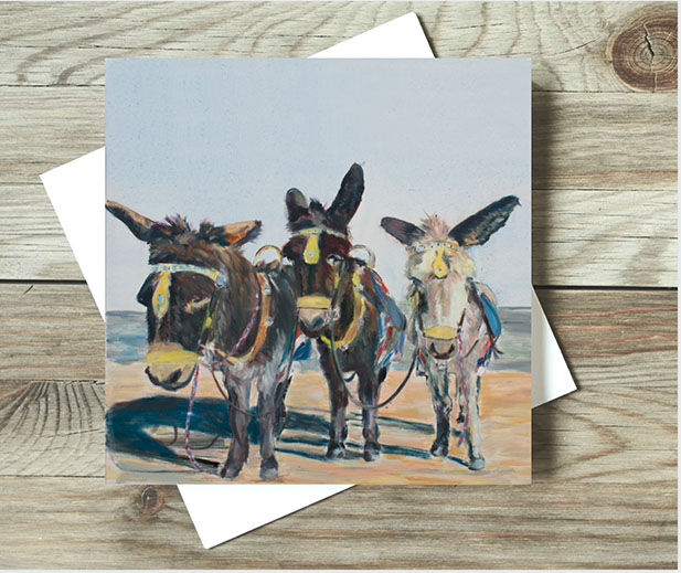 I photographed these donkeys on Cleethorpes beach, near the pier. The card is 6" square and blank inside. Limited edition prints are also available.